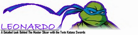 WEAKNESSES: On some occasions, Leo's leadership postion among the Turtles can cause friction, and although the may not always agree with him, his brither will always respect him. And because of the "big brother" role he's earned, Leonardo is often the voice of reason, which in turn often makes him the bad guy, shooting down some fun ideas in favor of serious business.