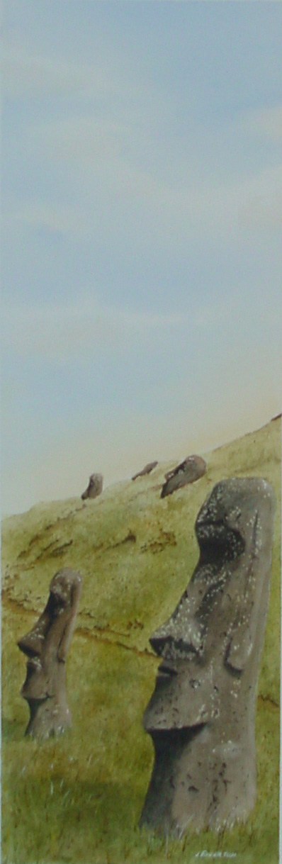 Painted from a scene viewed during a visit to Easter Island.