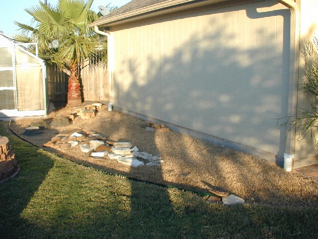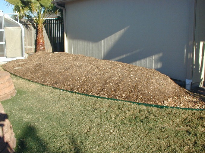Area behind garage contains two xeriscape gardens - this is one of them at the beginning of construction. |