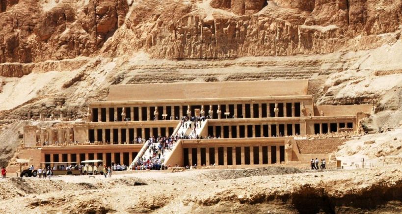 The Mortuary Temple of Hatshepset is built partly of stone and partly carved out of the very mountainside. |