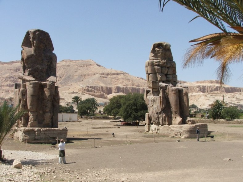 These two giant statues served as guardians to the valley. When the Greeks came to Egypt, they named them the Colossus of Memnon, but the heiroglyphs tell a different story. This is not Memnon, but Amenhotep III of the 18th Dynasty. |