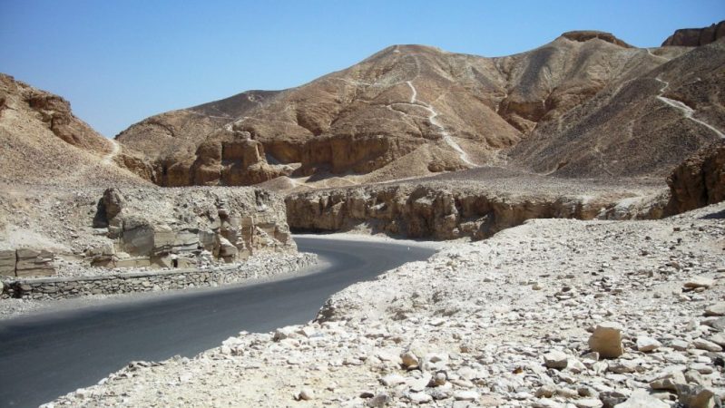 The narrow valley does not look all that impressive. It was not built to impress, but to hide the tombs of the pharaohs. With the sole exception of the tomb of the young boy-king Tutankhamun, the tombs failed in their purpose, for they were all emptied by tomb robbers long ago. |