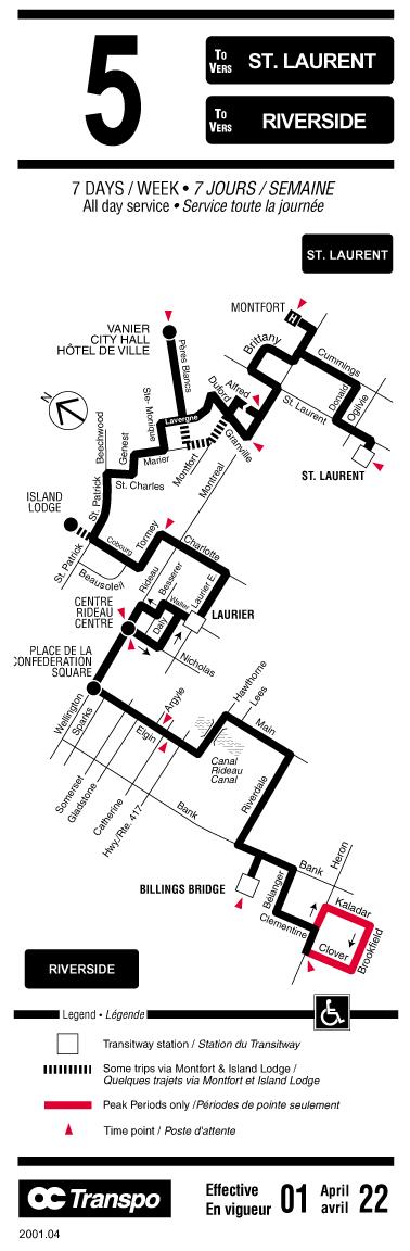 for Route 5 (effective April 22, 2001)