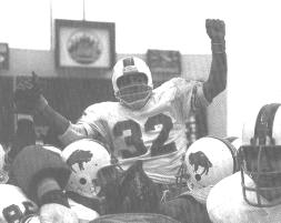 After rushing for 2,003 yards in a single season, the Bills take O.J. Simpson for a victory lap on their shoulders after Simpson broke the mark against the New York Jets in New York. |