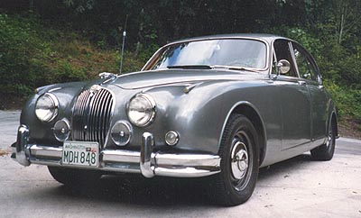 1963 JAGUAR MKII : Roar into town in style with this sleek and sexy car!!!3.8L 4sp w/OD. LH Drive, 96Pt concours driver. Grey/Red $12,000.00.