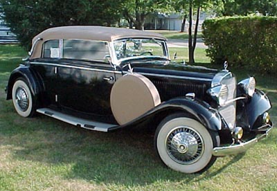 1934 Mercedes Model 200: Convertible cab, extended chassis model, green dual side mounts with tan leather interior and tan top. Grandfather was original owner. $35,000.00. Price negotiable.