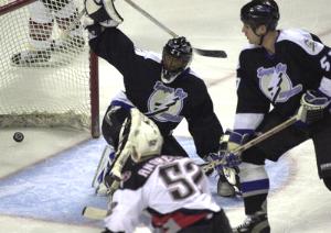 The Sabres looked like they were ready to romp when they took a 4-1 lead with goals by Miroslav Satan and Vladimir Tsyplakov. But in the third Tampa Bay came back with goals by Jassen Cullimore, Nils Ekman and Todd Warriner, sandwiched by the second Andreychuk goal of the game. The Sabres looked as if they had the game wrapped up, leading 5-2 and with a powerplay. But instead, it was Tampa which scored two shorthanded goals in 25 seconds, with the goals by Ekman and Warriner.