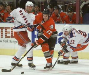 Only 2:22 into the second period, Mark Messier scored his 17th goal of theseason when the Rangers had a powerplay to put New York back into the