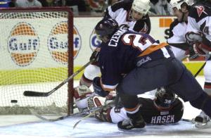 Meanwhile, Hasek has been impressive in his last two starts. He made 30 saves against the Islanders and would have had a shutout if the puck hadn't somehow found daylight when he thought he had the puck covered just before Czerkawski whacked it into the empty net.