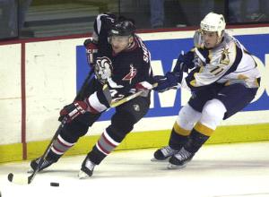 Biron showed that he has one of the quickest glove in the East when he stopped Greg Johnson, who had gone in on a breakaway in the second period. Biron snared the shot with his catching mitt like a first baseman trying to pick off the runner.