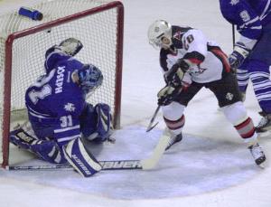 In the second period, the Sabres made it 2-0 when Dimitri Kalinin banged home a rebound of J.P. Dumont's shot past Joseph 9:34 into 2nd period. By the end of the period, the Sabres had an unbelievable 32-9 advantage in shots over their rivals from Toronto. It was obvious that Buffalo would sit on their 2-0 lead in the final period and that's exactly what they did when they managed only 3 more shots on Joseph.