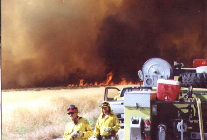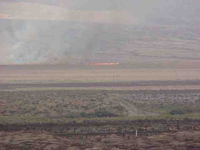 As mentioned before, the main fuel type in Northern Nevada is cheat grass and sagebrush. Cheat grass is a non-native species of grass that was introduced to the United States in the early 1900's. The seed was mixed in with grain seed that had been imported from Asia. In the last 100 years cheat grass has proliferated the Great Basin and is now one of the most dominant vegetation types and noxious weeds. Cheat grass is very well adapted fire species. After curing, the grass has burning properties that have been compared to the explosiveness of burning gasoline. It is an annual grass and once an area burns, without aggressive reseeding efforts, cheat grass will dominate the area the following growing season. This fine flashy fuel creates some extreme fire behavior. Below are some pictures from fires over the last 8 seasons. |
