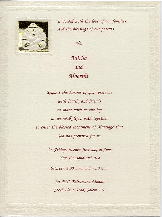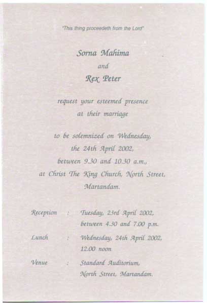 And people, let us make it a point to attend the marriages of our classmates and liven up the ceremony.