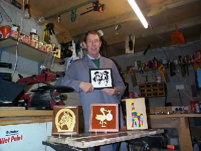 Welcome to Valleywoodcrafts, this site is to display some of the wooden crafts that I produce on the island of Anglesey in North Wales. The picture below shows me in my workshop with a couple of examples of the work that I do. I first started, when I was asked if I could make something as a present for someone who was getting married. From those early days, there has been a lot of interest and I now have many different designs. This site will grow as I produce more. Click on a category below to take you to the samples pages. I make these as a hobby, but if anyone is interested I can make them to order, please drop me an