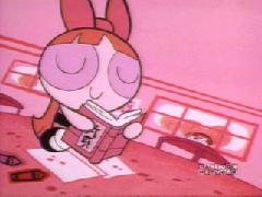 Blossom is the leader of the 3 PpG's. She works out all the plans and that stuff. Blossom's color is pink. She has a long pony tail with "one serious hair bow." Her extra special power is ice breath and sometimes fire breath! She once called herself Liberty Bell and dressed in a Captainess America suit, but that stage, along with the freedom mobile, are passed. (pun intended) Here are the few pictures I have of her!