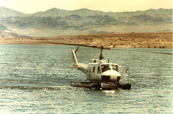 Bell Huey UH-1H on Lake Mead in 1971. We were ironing the kinks out of the systems before taking off around the US for three years sampling water in thousands of freshwater lakes.