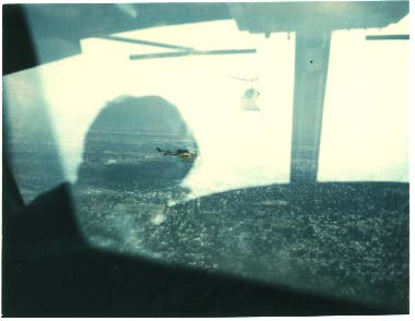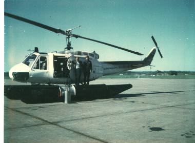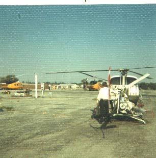 Stopping for JP-4 in Madison Wisconsin in 1974. The guy inspecting our rotor system was Mike Smith "The Viet Nam Kid!" Mike was later a Frontier Airline captain.