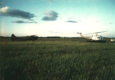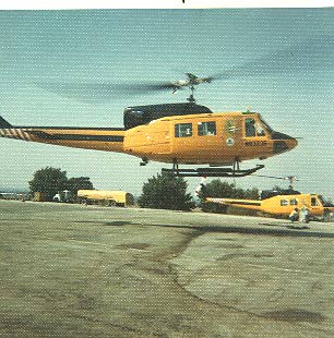 St. Cloud Minnesota with our Otter on the left. We had amphibious floats for the Otter too There were 4 Hueys and one Otter with six crews. The Otter was a taxicab to take the second shifts out and meet the Hueys at mid day, then bring the early crews home.