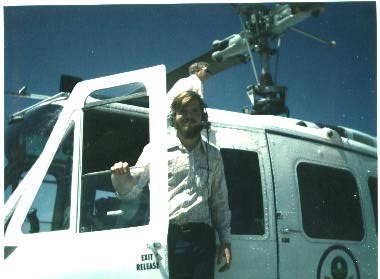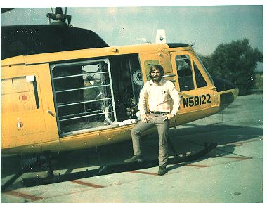 The maniac again, posing for the TV cameras or a newspaper crew in front of our N-Model twin engine Huey.