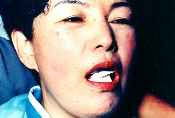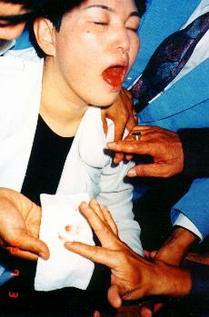 the Crucifix have entered smoothly into her mouth (picture below to the right, was taken in the exact moment). Fr. Francis Su, two other priests and the people that were next of the seer,