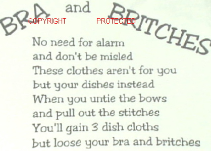 Bra & Britches with pot holders $9.95 plus shippingHERE ARE THE COLORS THAT ARE AVAILABLE
