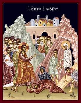 THE RAISING OF LAZARUS Giving us before Thy Passion an assurance of the general resurrection, Thou hast raised Lazarus from the dead, O Christ our God. Therefore, like the children, we also carry tokens of victory, and cry to Thee, the Conqueror of death: Hosanna in the highest; blessed is He that comes in the Name of the Lord.