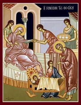 THE BIRTH OF THE THEOTOKOS Thy birth, O Mother of God, has brought joy to all the world; for from thee arose the Sun of Righteousness, Christ our God, Who, having dissolved the curse, has given His blessing, and having abolished death, has granted us life eternal.