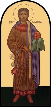 ST LAWRENCE O Lord our God, your holy martyr Lawrence has deserved the crown of immortality on account of his good fight. Armed with your strength, he has vanquished his persecutors and crushed Satan's dreadful might. Through his supplications, O Christ God, save our souls!