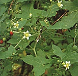 Ze heeft kort gesteelde bladeren die in omtrek 5-hoekig zijn