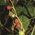 Ze groeit in struikgewas waarin ze zich omhoogwerkt.