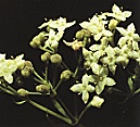 De 4 vergroeide kroonbladen staan stervormig uit elkaar.