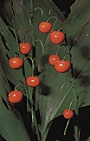 De vruchten bestaan uit oranjerode bessen maar het zijn vooral