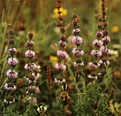 De bloemen staan dicht op elkaar en zijn roze tot violet gekleurd.