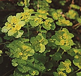 Vanaf maart tot juni verschijnen de groenachtig gele bloemen.