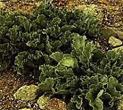 staan in een rozet en hebben wel wat weg van koolbladeren.