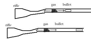 involves: the bullet, and the rifle. Expanding gas exerts a force on