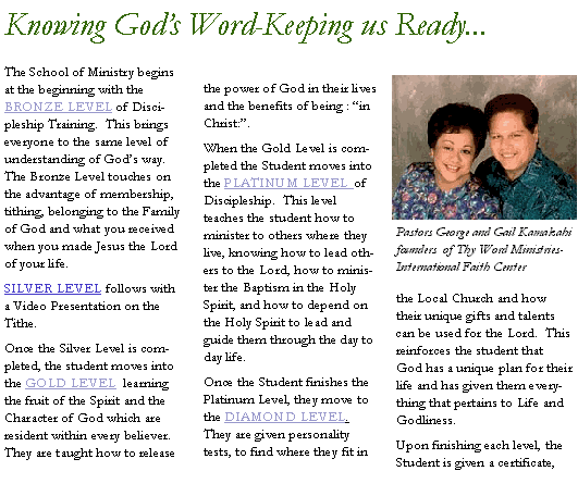 course is the prerequisite to the 2nd year of School of Ministry. What do you want from the Lord? Find out what He has for you-Join us at the School of Ministry here at Thy Word Ministries, Inc.-International Faith Center.