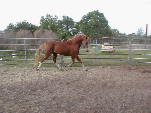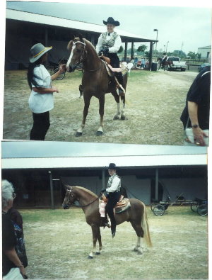 This FLASHY eye catching 14.2 hand stallion with his star, strip, snip, flaxen mane and tail, and two white socks on a chestnut body grabs the judges eye every time!!