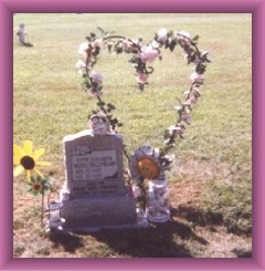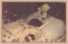 THE SITTING TIME by Joseph Digman Don't listen to the foolish unbelievers who say forget. Take up your armful of roses and remember them the flower and the fragrance. When you go home to do your sitting in the corner by the clock And sip your rosethorn tea It will warm your face and fingers and burn the bottom of your belly. But as her gone-ness piles in white,crystal drifts It will be the blossom of her moment the warmth on your belly, the tiny fingers unfolding, the new face you've always known that has changed you. Take her moment and hold it as every mother does. She will always be your daughter. And when the sitting is done you'll find bitter grief could never poison the sweetness of her time. Faith Elizabeth Moore August 15, 1997- August 20, 1997 In January of 1997 my husband and I found out I was pregnant with our second child. We were so excited and hoped for a little girl, since we already had our little boy. We had been trying for a year and a half to get pregnat, so this was the wonderful news we had been waiting for. Things went smoothly for the first three months, then in the fourth month of the pregnancy a routine ultrasound showed that Faith's heart was beating too slowly (55-65bpm). We were sent to Children's Hospital in Omaha to see the Perinatologist and the Pediatric Cardiologist. They saw that Faith had six different structural defects in her heart and they gave us little hope. The worst case scenerio was that she would die in utereo; the best chance (according to them)was that I would carry the pregnancy to the 26th week. We were just devestated. We never in our wildest dreams imagined our baby would be sick. We went home and told our family and friends. Immeadiately a prayer chain began for Faith. As time went on this prayer chain stretched across the United States, into England, France and Italy. These prayers were what lifted us up and supported us during the uncertain times. We had to make the two hour round trip to Omaha every two weeks at first, then twice a week toward the end as doctors looked for signs of heart failure. These multiple trips gave us time to get to know baby Faith even more. We already knew she liked spicy food because I always craved mexican food when I was pregnat with her, but every ultrasound and echocardiogram made her more and more familiar to us. Once, the cardiologist couldn't look at her heart because she was holding her hand over it! Even to this day, we laugh about that! Even though the doctors held out little hope for Faith, we never gave up on her. She was such a fighter and there were so many prayers being said for her that we just KNEW she would be fine! In fact, at one of the many visits, the cardiologist saw that one of Faith's heart defects had healed itself!! He admitted that was unusual and said that he never saw a baby so sick fight for so long as Faith did. That was a confirmation for us that she would be alright. Yes, she would need surgery or maybe a transplant, but we never once thought that she would die. Finally, on August 15, 1997 (in the 35th week of the pregnancy) the perinatologist saw a build up of fluid in her tummy--a sign of heart failure. He called the cardiologist and preparations began for an emergency C-section. It was kind of scary to see the nurses running in and out of the room, but I was excited to see my baby girl! Faith's birth was her moment of glory! She surpassed all the doctors expectations: she was born alive and CRYING--not limp and unconcious as they had thought--she looked perfect. She was small (3 lbs. 12 oz and 17 inches long) but beautiful. She had black hair and eyes the color of violets. I remember when she looked into my eyes for the first time--it was like she held the wisdom of the universe. She was baptized right away and the priest went to tell my parents how the delivery went and how she cried! She was then whisked off by the NICU team to have an exeternal pacemaker placed through a vein in her leg (much like a heart catheterization). She remained sedated and on a ventilator in the NICU for the next four days while doctors looked her over. We sat by her side, holding her hand, talking to her and when the medications would wear off she would grab a finger or open her eyes. Our son Tommy came up to see her and he would play "This little piggy" with her tiny toes, or kiss her warm little tummy. Once he said "My baby sister is a baby doll!" Even though she was covered with tubes and wires she was perfect to us. Then one day we had a meeting with the cardiologist. He lowered the bomb that destroyed my world: there was nothing they could do for Faith. Due to the nature of her heart defects, there was no surgery they could do and she wasn't eligable for a heart transplant because her lungs were too small. Her heart had become so enlarged that it filled her chest cavity and left very little room for her lungs to grow. We had two options: leave her on the ventilator until her organs completely shut down (about a week) or remove her from the ventilator and let her die in peace. After much discussion with family and our priest, we decided to let her go with dignity. I'll never forget walking up to the hospital knowing it would be the first and last time (on earth) that I would hold her. My husband, my father and I waited in the "quiet room" while my mom dressed Faith in what was supposed to be her 'coming home from the hospital' dress. It was a lovely peach colored dress with ivory lace, and she wore lacy matching tights. She looked so beautiful. I remember my dad telling me with tears in his eyes to try and enjoy my time with her--no to let my sadness spoil the special moment I would have with her. I didn't know how I was going to do that, but when the nurse brought her in and placed her in my arms a great sense of peace descended upon me. Her spirit gave me the strength. We all had a chance to hold her, rock her, sing to her and kiss her. We took tons of pictures. Finally, I told her that 