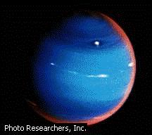 Neptune was named after the Roman God of the Sea. It was discovered in 1846 by J.G. Galle. In 2010 Neptune will complete it's first orbit around the sun since it's discovery. Neptune is 2.8 billion miles away from the sun. It's diameter is 30,000 miles. Neptune's day is 18 hours and it's year is 165 earth years. It has 3 rings and 8 moons. The normal temperature is -360 degrees farenheit, in the winter it is -390 degrees farenheit. Like Jupiter Neptune also has a storm, The Great Dark Spot.