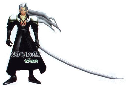 Sephiroth: when he's yonger, coming out of a town that he burnt down, and destroying the jenova robot statue
