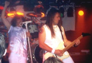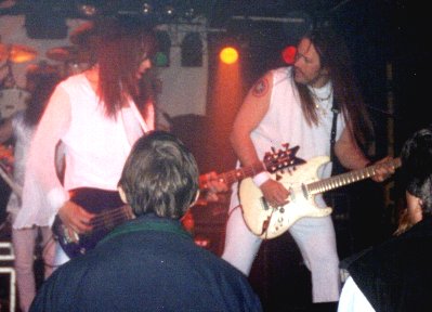 I came to the show skeptical. The photo in the local paper showed them still wearing the old white outfits, and no one was sure how this would go over with our kind of tough local crowd. Well, although the crowd was kind of small, Angel really surprised me! They actually kick ass! The songs still sound good, the band is tight, and Steve is a major guitar force. And the white outfits aren't really that bad, in fact Renee and I loved Randy's clothes the best, and they were the most flamboyant!