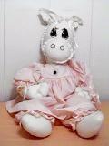 Trouble is, they won't let her into the buffet because she makes a real pig of herself. Like the rest of us, she is about 30" tall and if she should make a mess during her meal, she is machine washable.