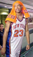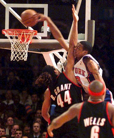 March 28, 2000: Camby lays a monster dunck over Sacramento Kings Big man Valdi Divac in a losing effort.