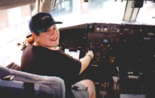 And here I am at the controls... After the flight my co-worker/travel partner and friend, Luz yelled at me. She said "If you EVER touch the buttons on my flight again... Why I'll..." Well I'll leave the rest to your imagination. :-)