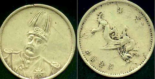 A Chinese Dollar coin A silver Chinese dollar from 1916 or so. The obv. has a general in high hat with a dragon on the reverse. |