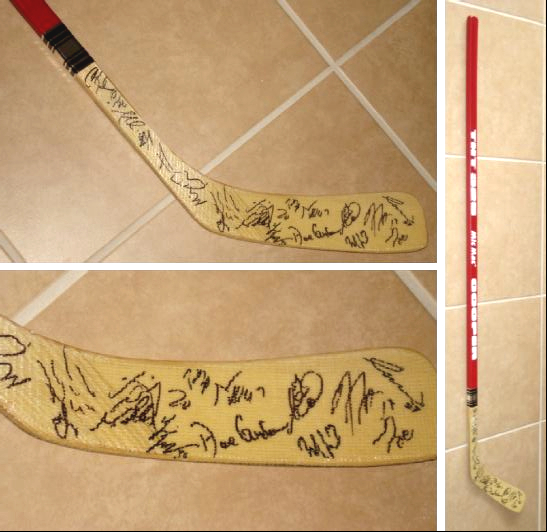 Official Full Sized Cooper Hockey Stick Signed In Sharpie. Includes: Brodeur, Elias, Kovalchuk, & More! Comes With COA With A Pic From The Signing! Free Shipping Anywhere Inside The United States!