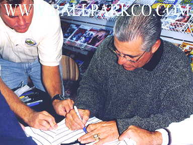 WELCOME TO OUR ONLINE CATALOG. BALLPARKCO IS A NAPLES, FL BASED INTERNET AND MAIL ORDER COMPANY SPECIALIZING IN AUTHENTIC AUTOGRAPHED MEMORABILIA. IN OUR ONLINE CATALOG YOU WILL FIND A WIDE VARIETY OF SIGNED SPORTS MEMORABILIA. ALL OF OUR ITEMS ARE OBTAINED THROUGH PUBLIC OR PRIVATE SIGNINGS. IN ADDITION, WE WORK REGULARLY WITH SHOW PROMOTERS IN 7 DIFFERENT STATES, AND AVERAGE OVER A DOZEN NEW SIGNINGS EACH MONTH! EVERY ITEM WILL BE ACCOMPANIED BY A CERTIFICATE OF AUTHENTICITY, A PHOTO OF THE PLAYER SIGNING, OR A TICKET STUB FROM THE SHOW APPEARANCE. PLEASE FEEL FREE TO E-MAIL US WITH ANY QUESTIONS. THANK YOU, -MIKE. (MIKE@BALLPARKCO.COM)