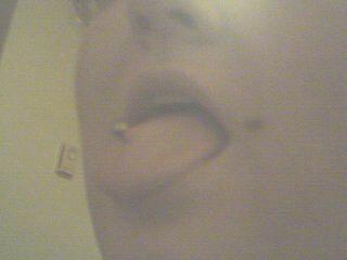 Ooooh, how sweet, I am sticking out my tongue. So obviously, this is my tongue piercing. Not very exciting is it? Can't get a good one of my nose piercing, since the stud is so tiny and I haven't taken one of my eyebrow yet. It looks pretty bad anyway. I ripped the piercing a few months ago and it is all scarred now.