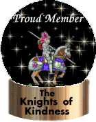 I am a very proud member of the Knights of Kindness! We're a worldwide group dedicated to making lives a bit happier. Click on the animated globe to be transported to our own BaddTeddy's homepage! Here you will learn more about us! You will also be givin an opportunity to join us here. We have members from all over the globe, from all walks of life. Right now we're also busy trying to form a group for younger members. There are so many wonderful caring teens out there. It's about time the world sees this. We always hear when they mess up, but they also need recognition for the good that they do.